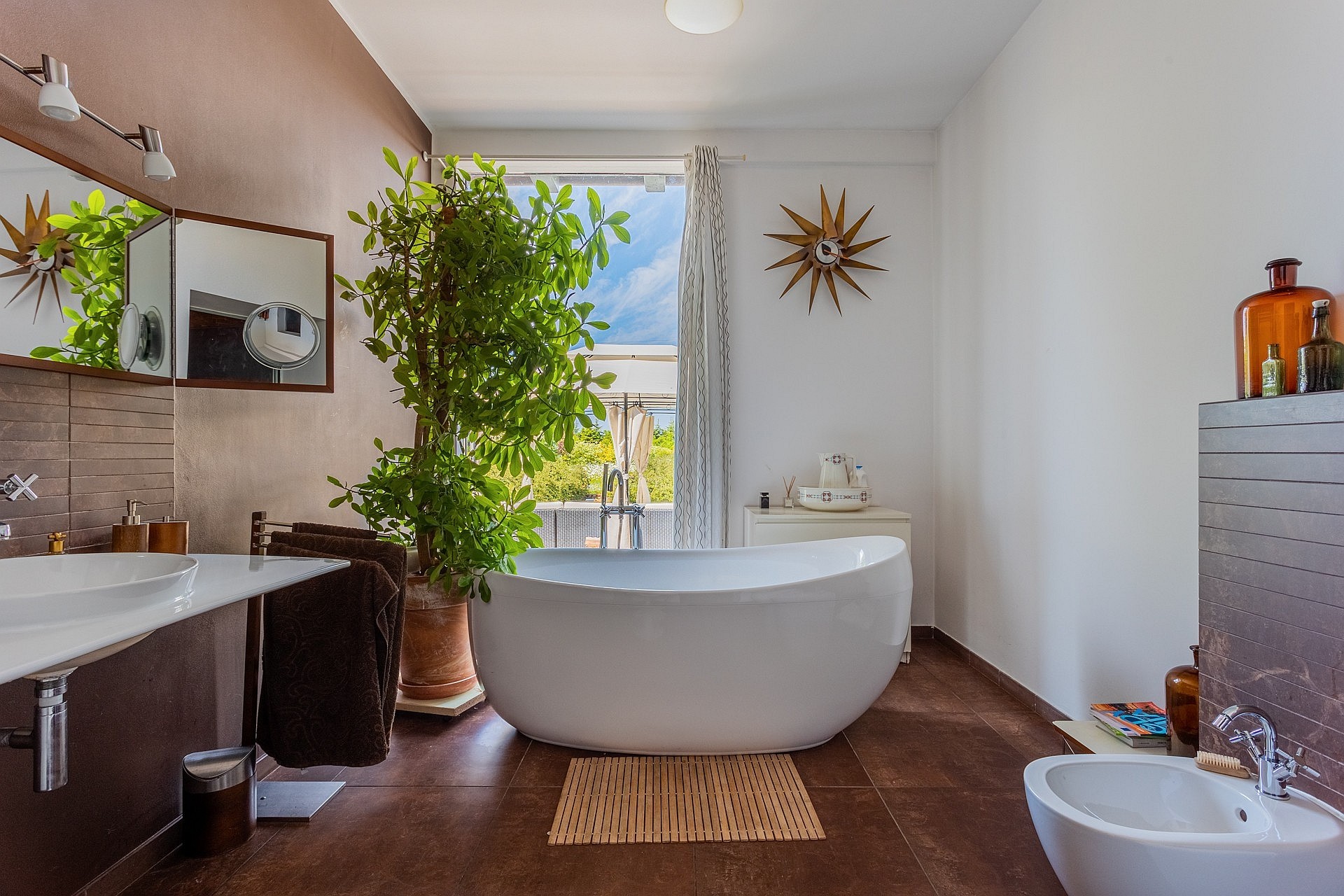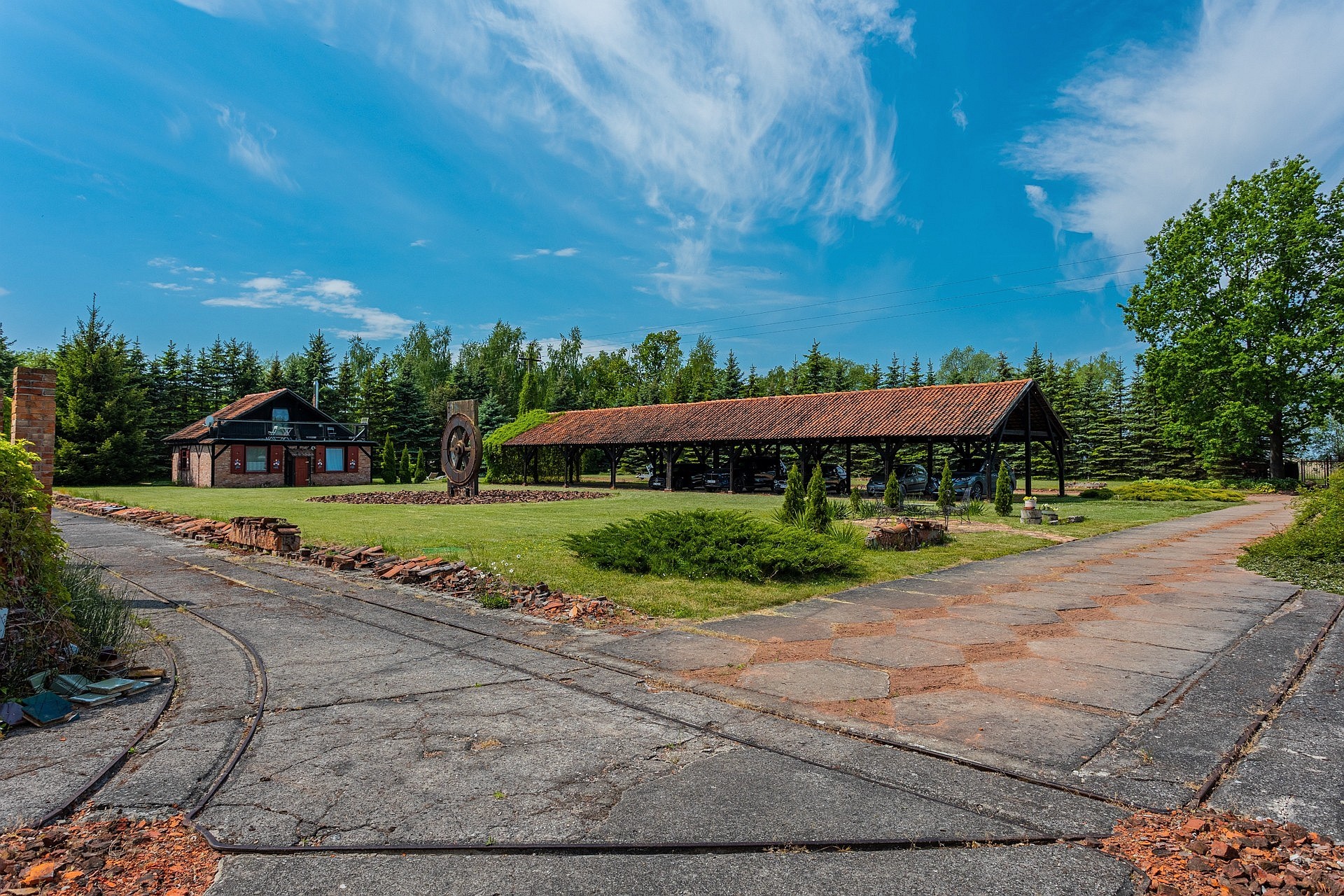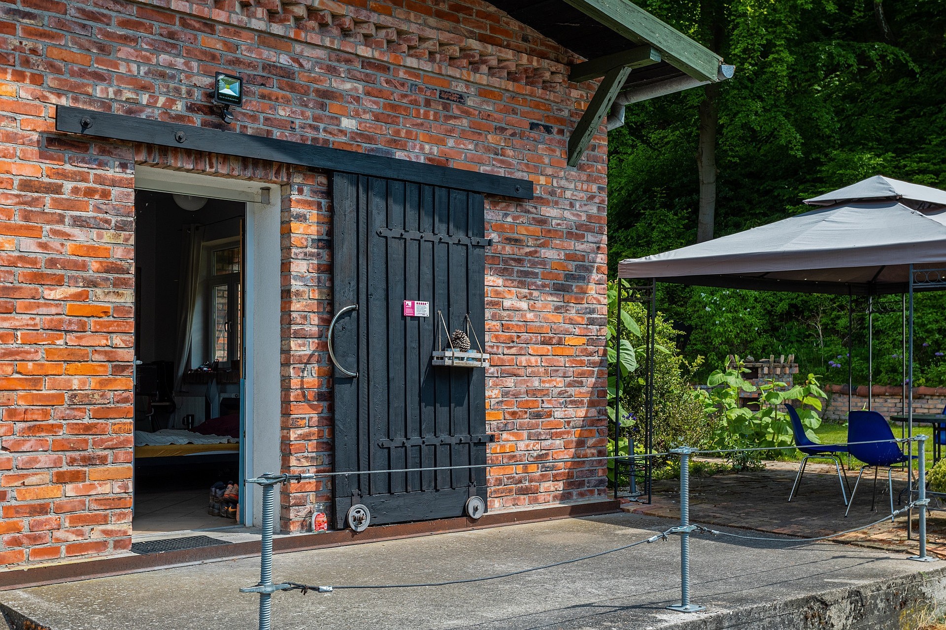 Aan de andere kant van het perceel staat een tweede woning met een oppervlakte van ongeveer 70 m², voorzien van een eigen open haard, twee terrassen en drie kamers. Dit gebouw is geschikt als gastenverblijf, atelier of vakantiewoning. Het volledige terrein van 6.100 m² (ca. 0,6 hectare) is beplant, omheind en zorgvuldig onderhouden, inclusief struiken, bloemen en een moestuin.