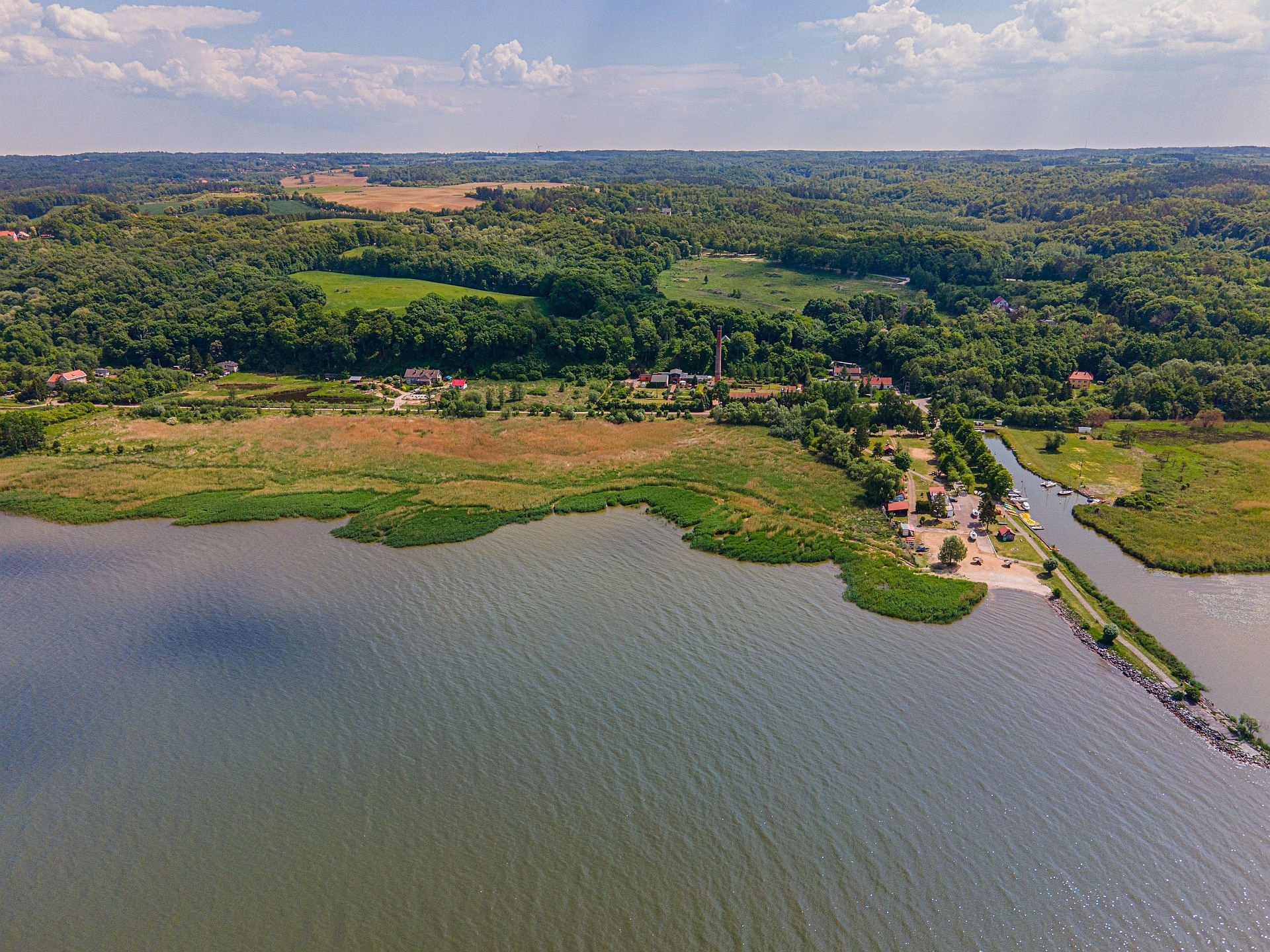 De eigendom bevindt zich op de eerste rij aan de oevers van het Wislahaf (Frisches Haff). Op slechts honderd meter afstand bevindt zich een nieuwe jachthaven, waar een jacht of motorboot direct kan aanmeren. Met de boot is Krynica Morska in ongeveer 15 minuten bereikbaar. Door de opening van het kanaal door de Vistula-schooring is er een vrije doorgang naar de Oostzee. Elbląg is via een nieuwe asfaltweg op 8 km bereikbaar; de reistijd naar Gdańsk bedraagt ongeveer een uur.