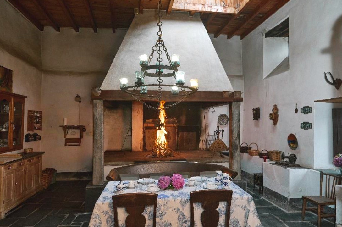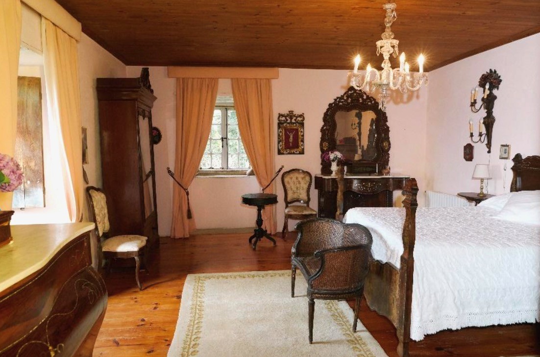 La vivienda dispone de 6 dormitorios, 3 baños completos y un aseo, un amplio salón con ventanales abiertos al paisaje, un gran comedor con vigas vistas y una cocina tradicional gallega con lareira y horno de leña. Cada estancia conserva detalles originales que narran siglos de historia.