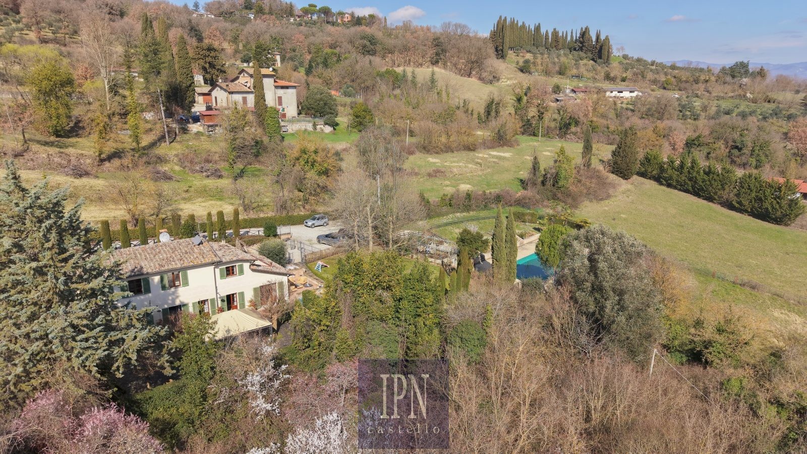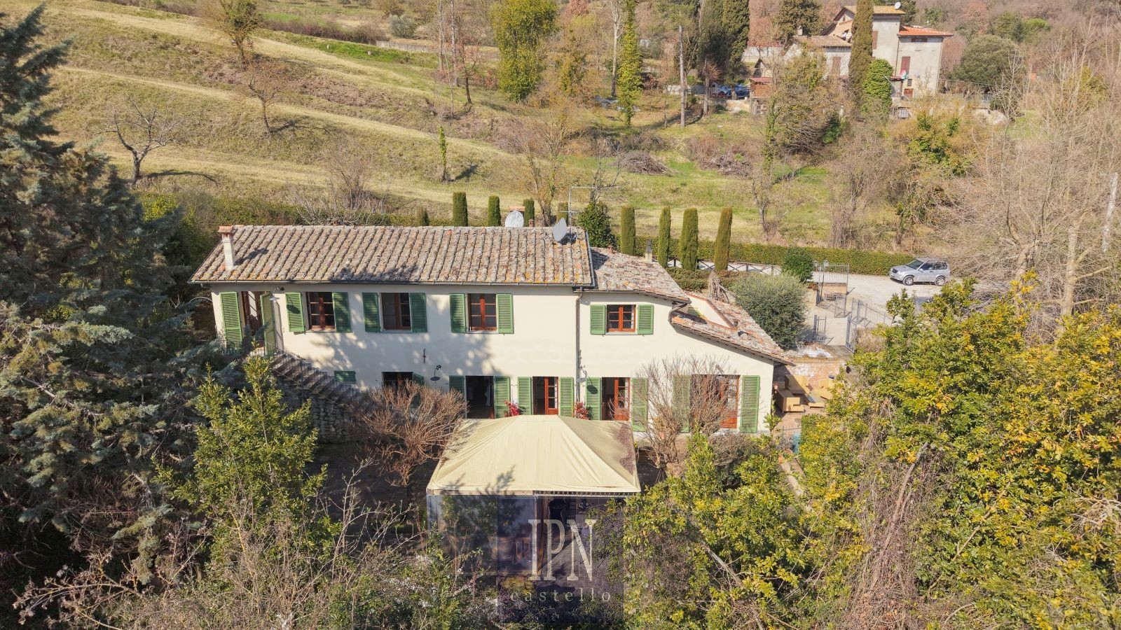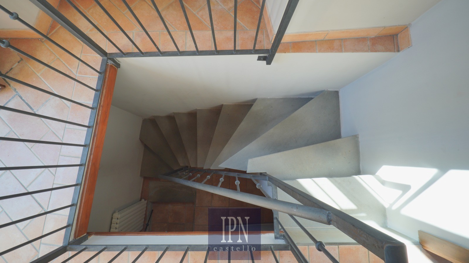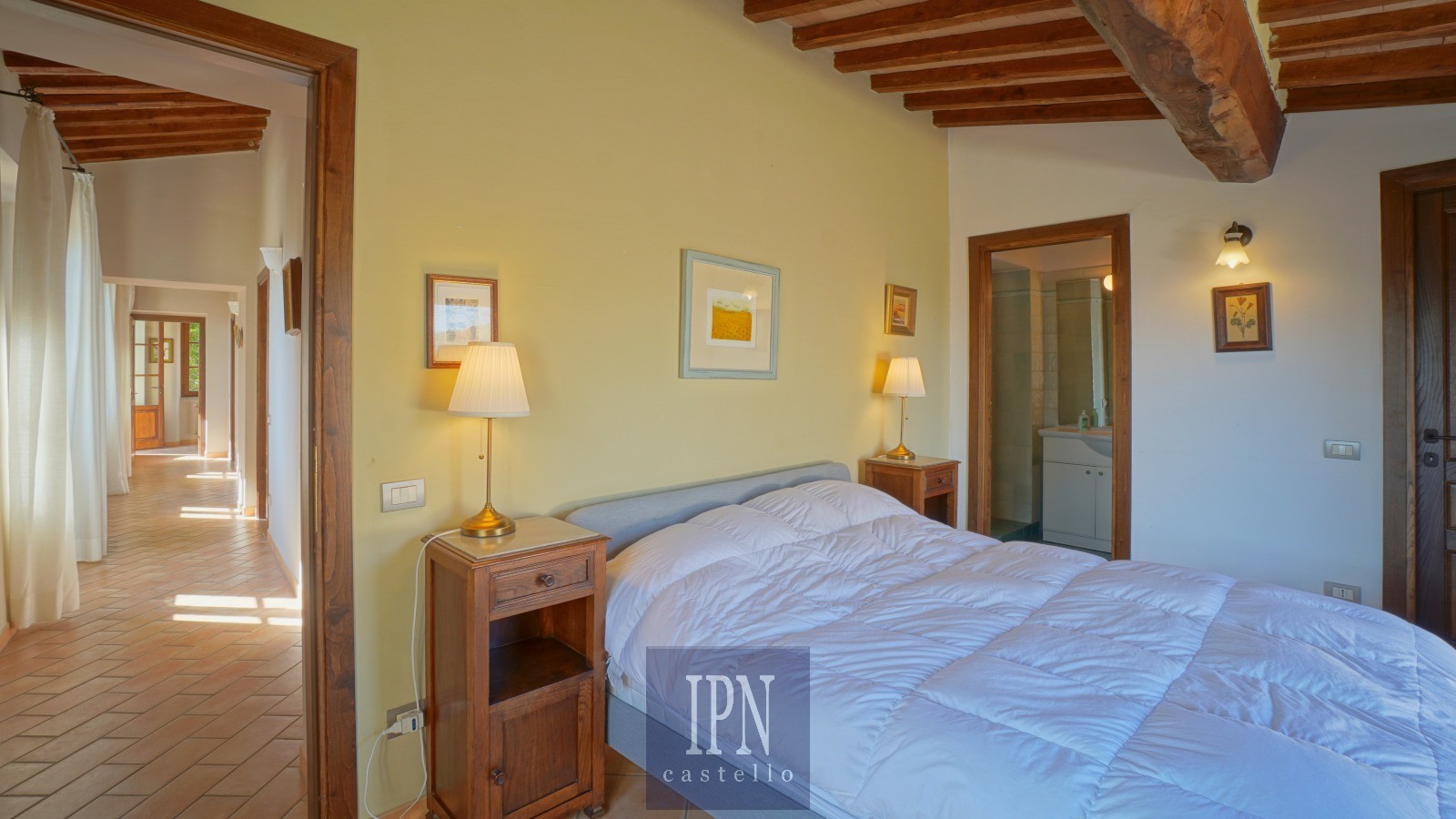 Gerestaureerd Umbrisch landhuis, ca. 250 m², op 4 km van Città di Castello. Het gebouw is verdeeld over twee verdiepingen, ontsloten via een interne en externe trap. Begane grond: woonkamer met open haard, keuken, eetkamer, kelder, veranda. Eerste verdieping: vier slaapkamers, vier badkamers, bijkeuken, terras en balkon met uitzicht over de Umbrische heuvels.