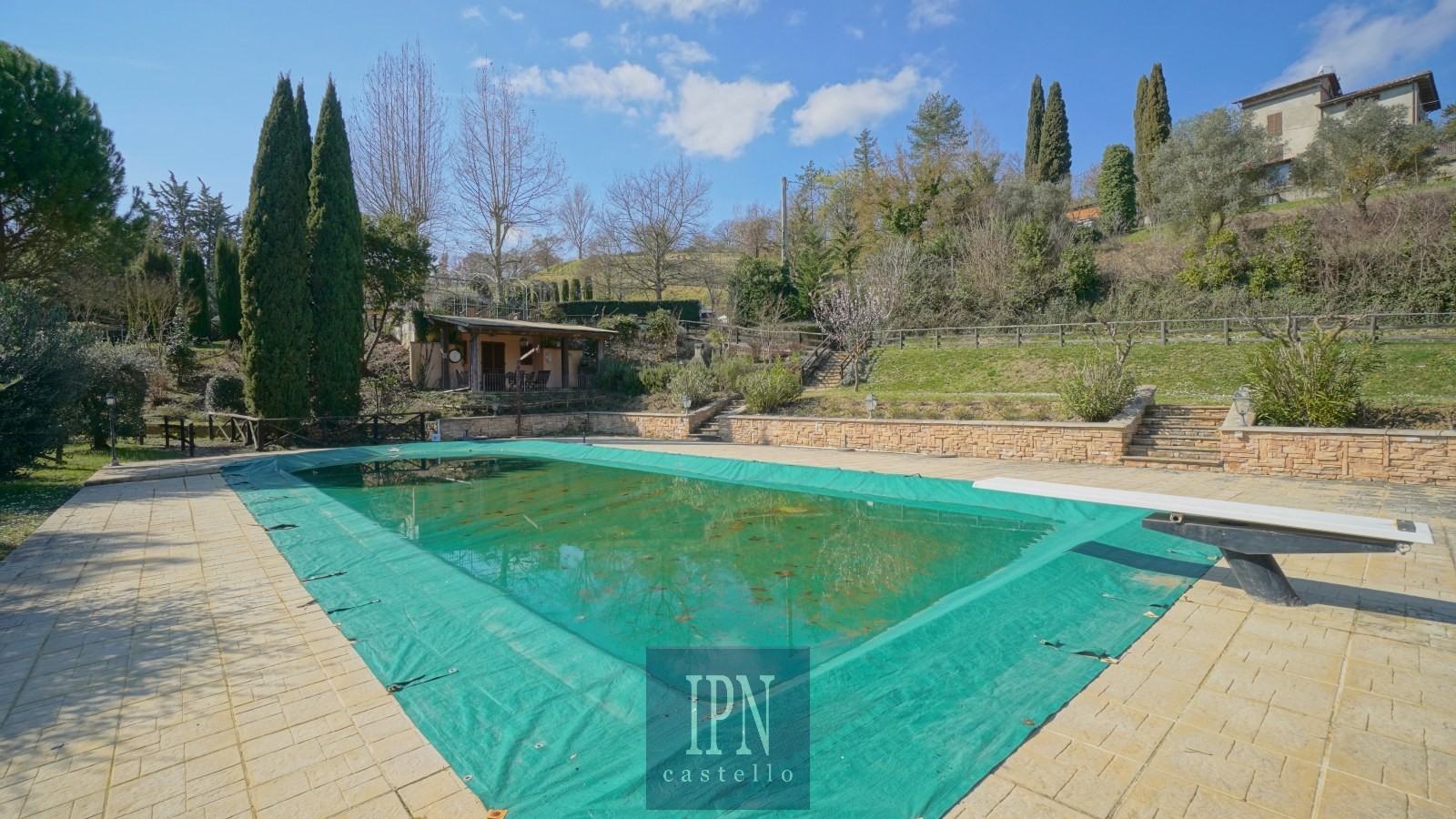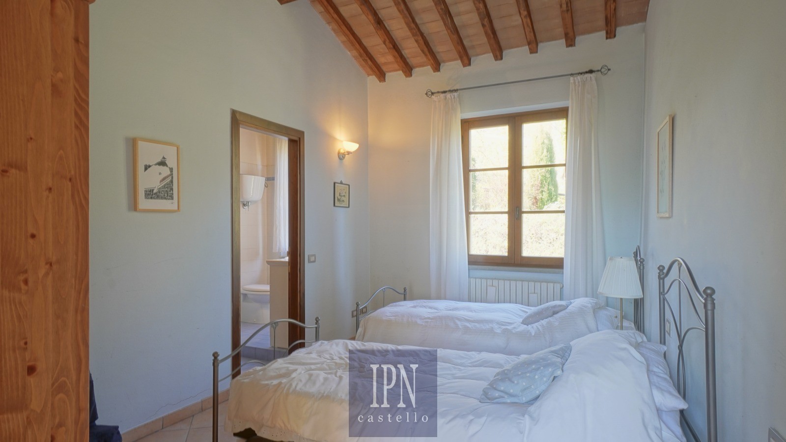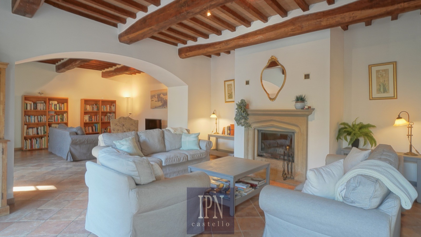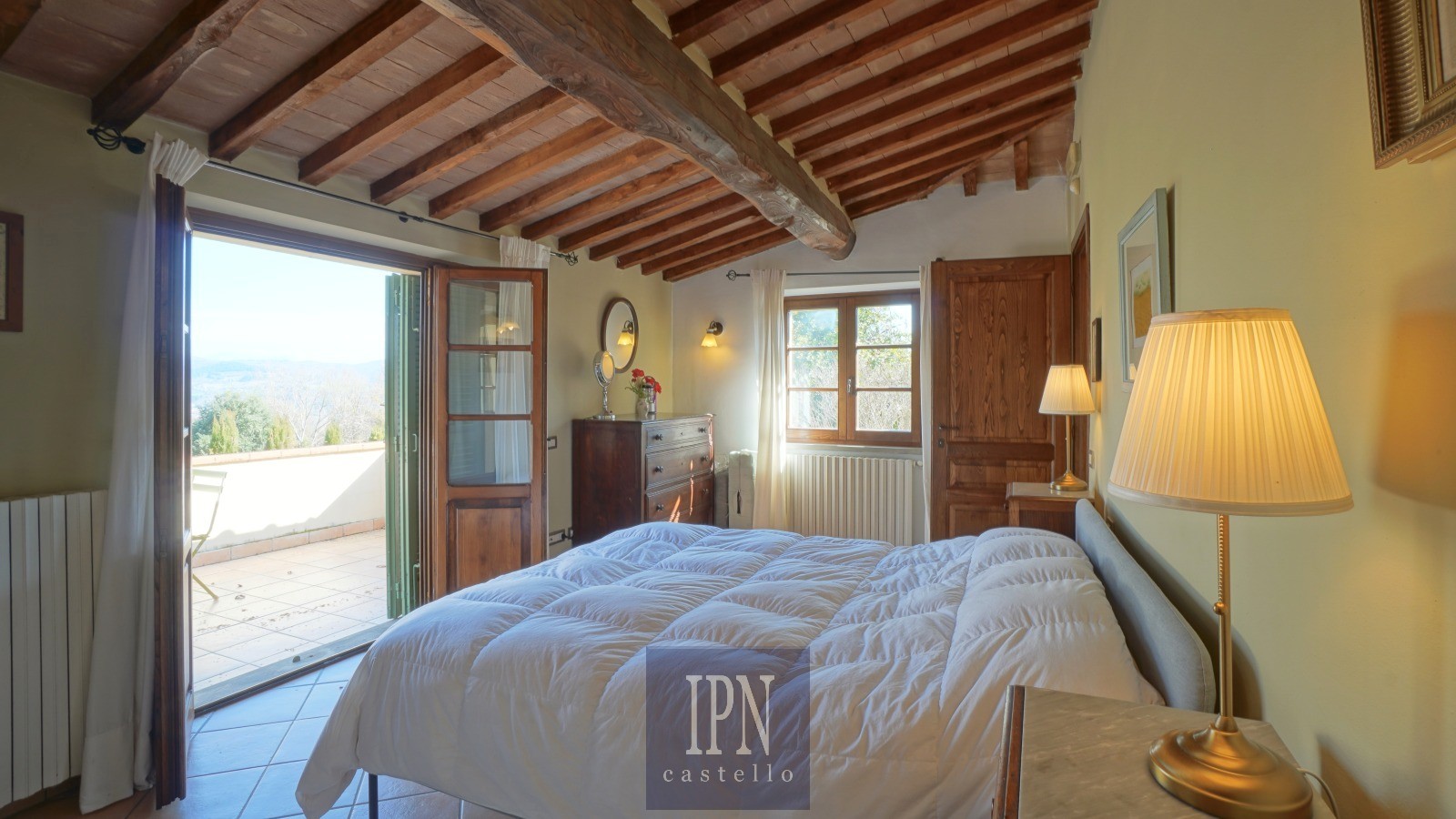 Gerestaureerd Umbrisch landhuis, ca. 250 m², op 4 km van Città di Castello. Het gebouw is verdeeld over twee verdiepingen, ontsloten via een interne en externe trap. Begane grond: woonkamer met open haard, keuken, eetkamer, kelder, veranda. Eerste verdieping: vier slaapkamers, vier badkamers, bijkeuken, terras en balkon met uitzicht over de Umbrische heuvels.