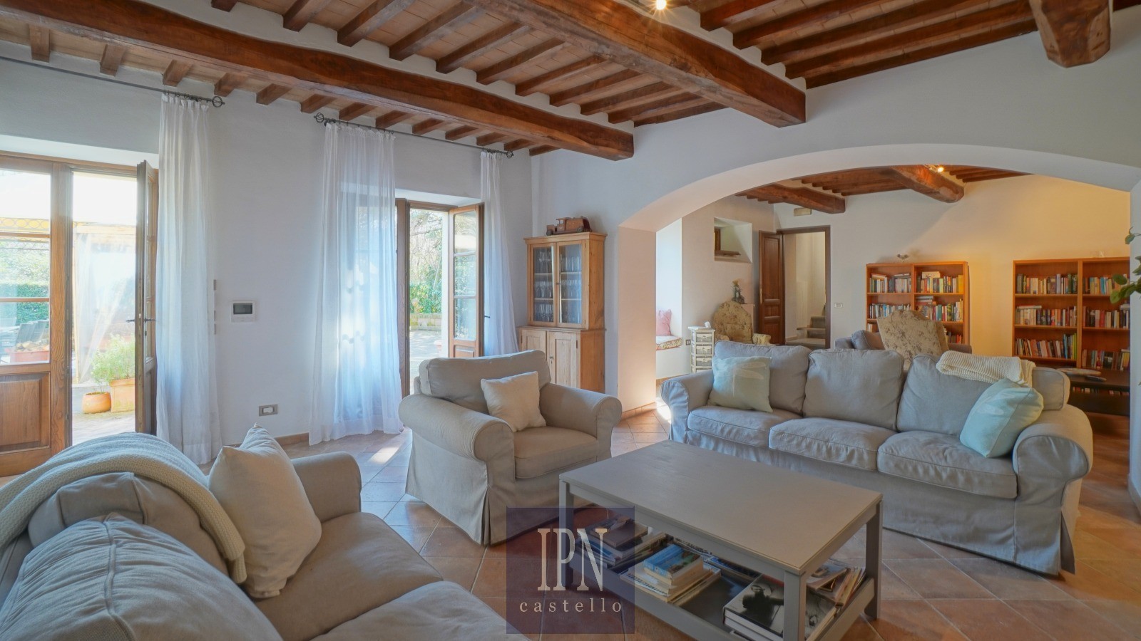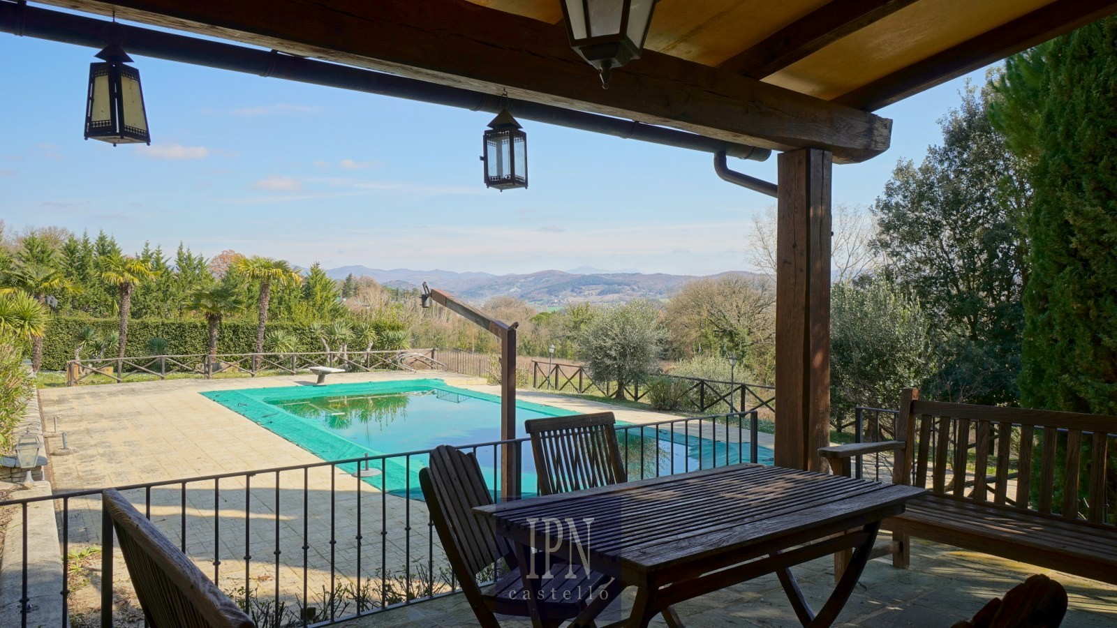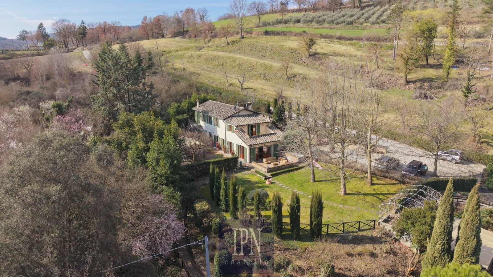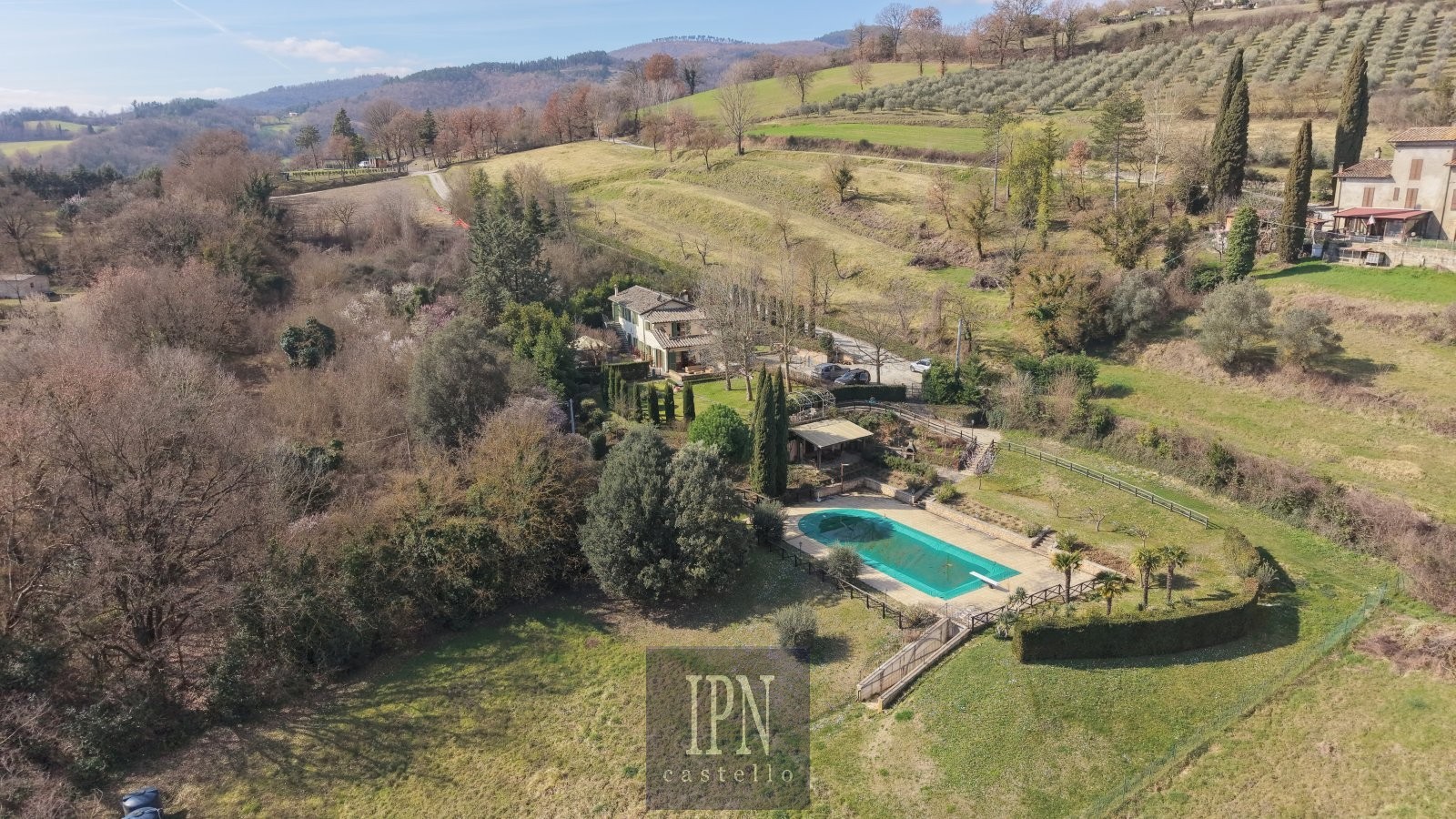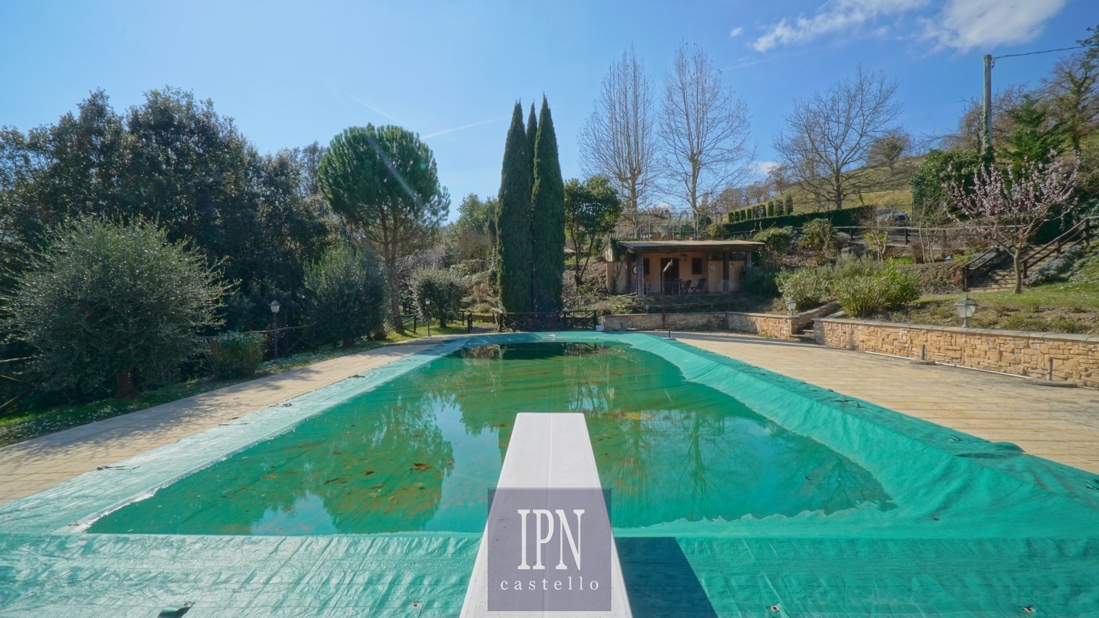 Gerestaureerd Umbrisch landhuis, ca. 250 m², op 4 km van Città di Castello. Het gebouw is verdeeld over twee verdiepingen, ontsloten via een interne en externe trap. Begane grond: woonkamer met open haard, keuken, eetkamer, kelder, veranda. Eerste verdieping: vier slaapkamers, vier badkamers, bijkeuken, terras en balkon met uitzicht over de Umbrische heuvels.