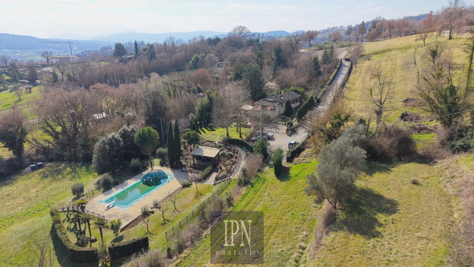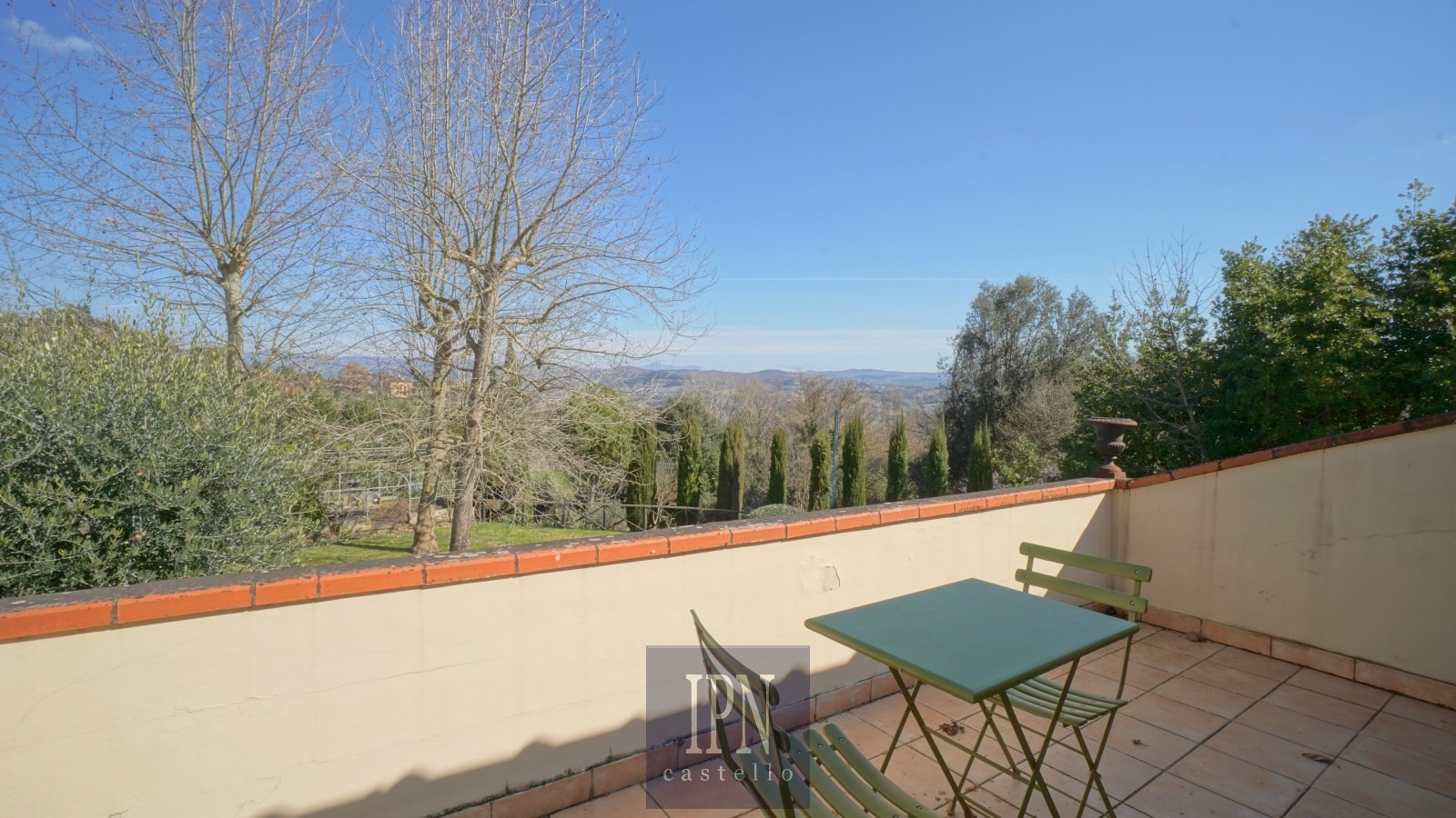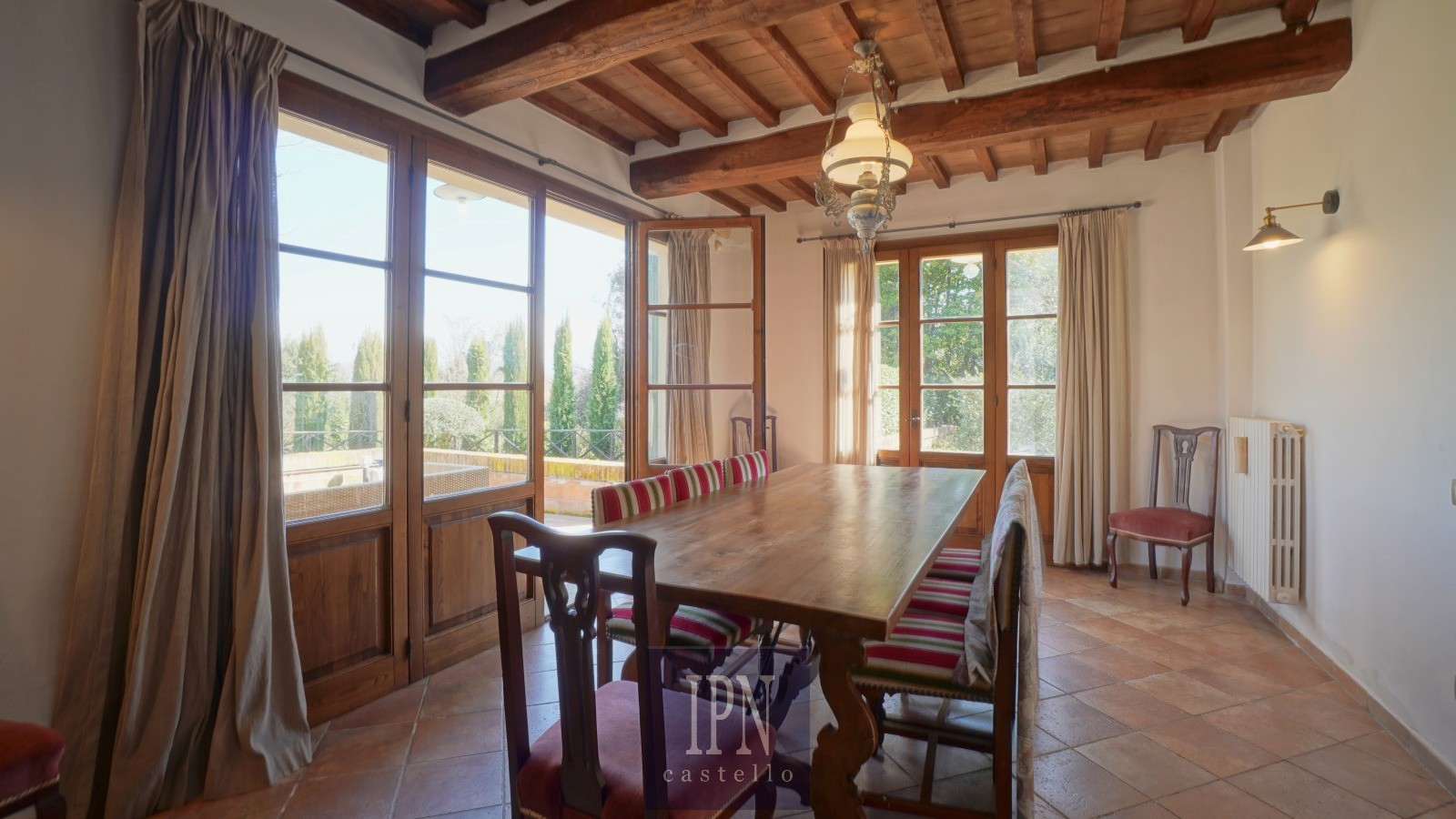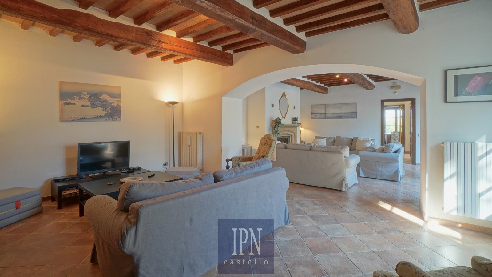 Gerestaureerd Umbrisch landhuis, ca. 250 m², op 4 km van Città di Castello. Het gebouw is verdeeld over twee verdiepingen, ontsloten via een interne en externe trap. Begane grond: woonkamer met open haard, keuken, eetkamer, kelder, veranda. Eerste verdieping: vier slaapkamers, vier badkamers, bijkeuken, terras en balkon met uitzicht over de Umbrische heuvels.