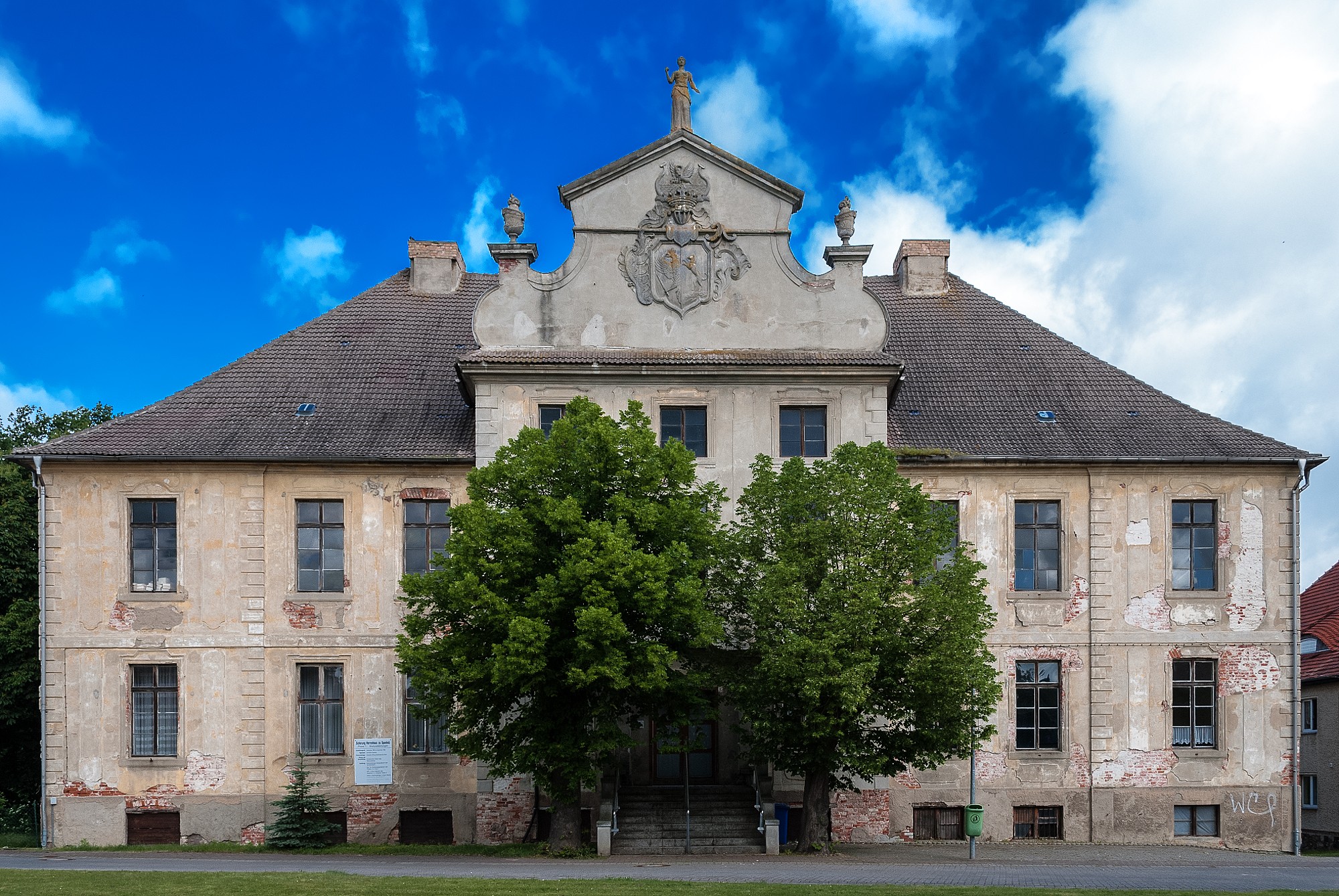 Manor house in central location with remarkable gable. The interior was changed in the post-war period. The stucco ceiling in the great hall was somewhat unhappily "restored". The staircase in the entrance hall was partially closed by an additional door. Among other things, living quarters were located here during GDR times.